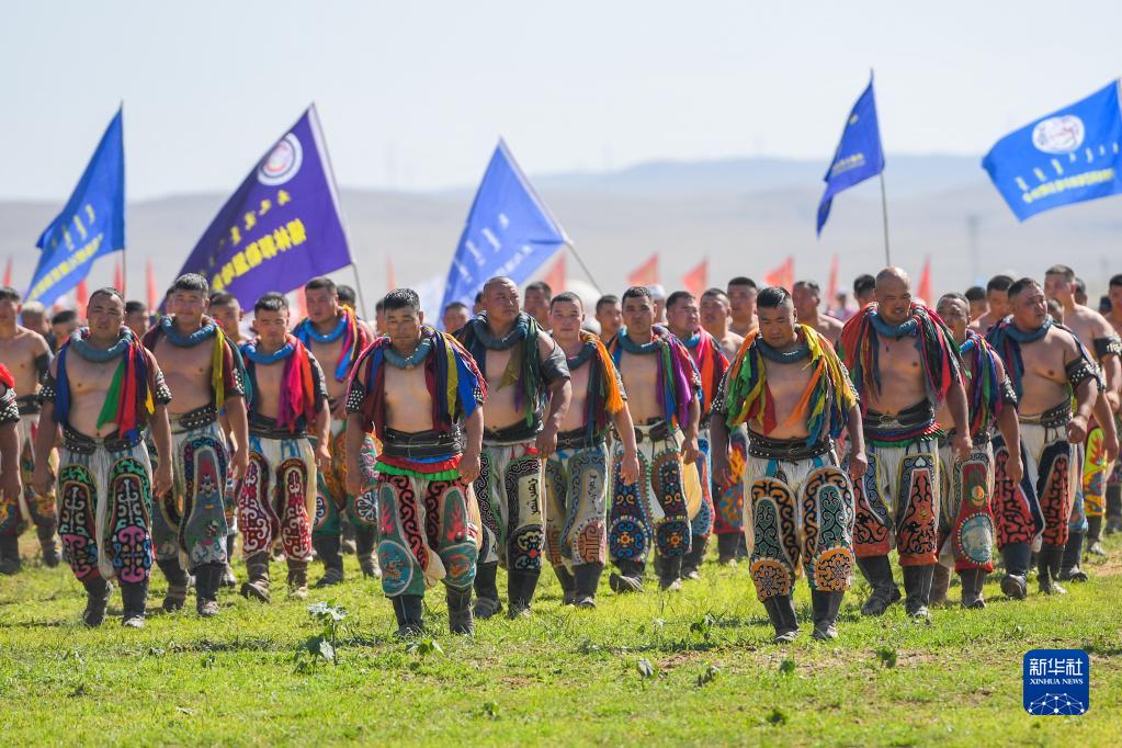 7月29日在内蒙古旅游那达慕开幕式上拍摄的搏克手。