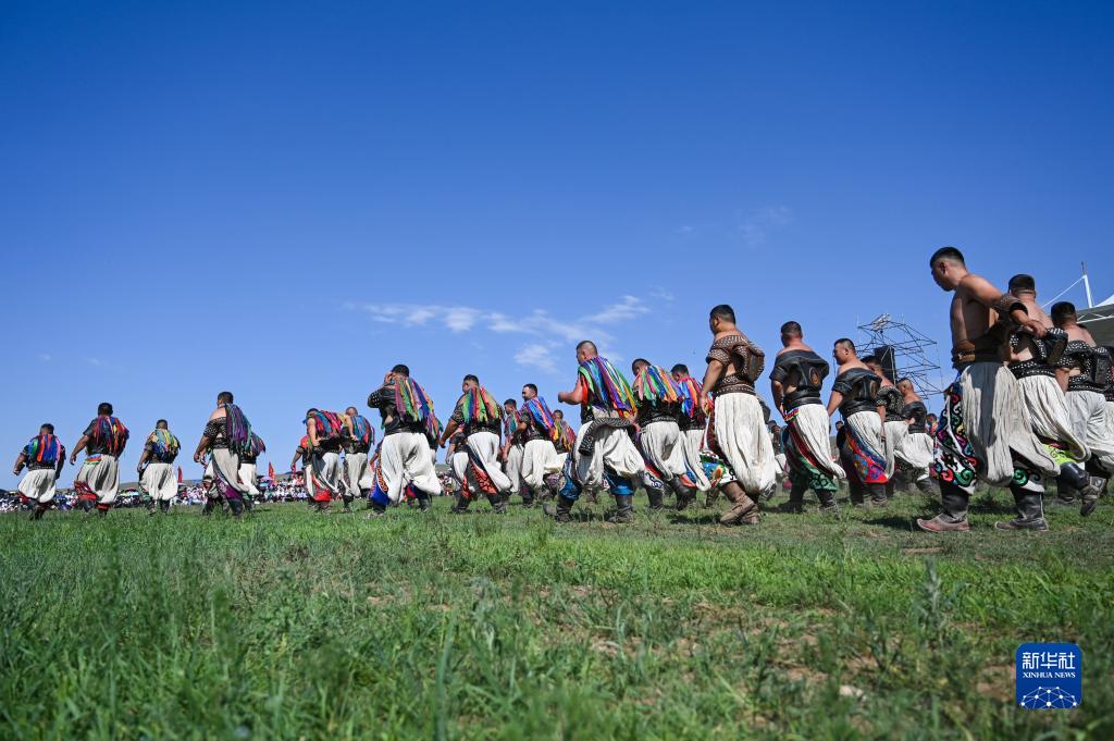7月29日,在内蒙古旅游那达慕开幕式上拍摄的搏克手。