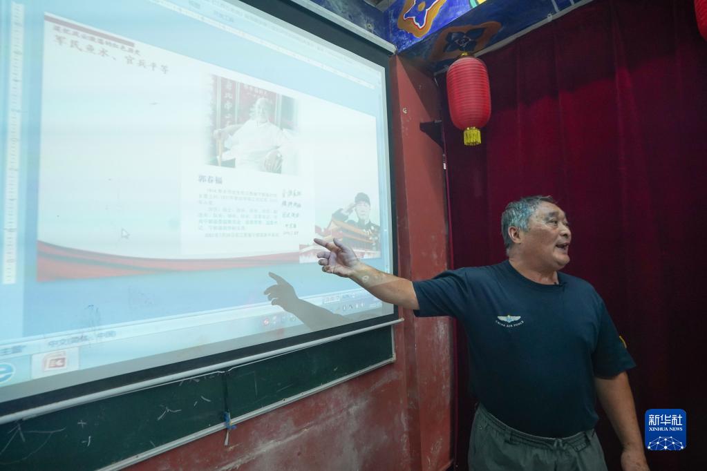 戴廷耀为社区居民讲述给老红军留影的故事(7月27日摄)。