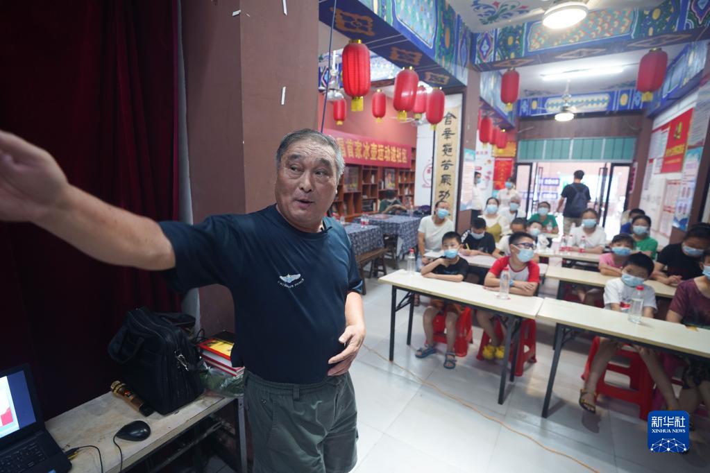 戴廷耀为社区居民讲述给老红军留影的故事(7月27日摄)。