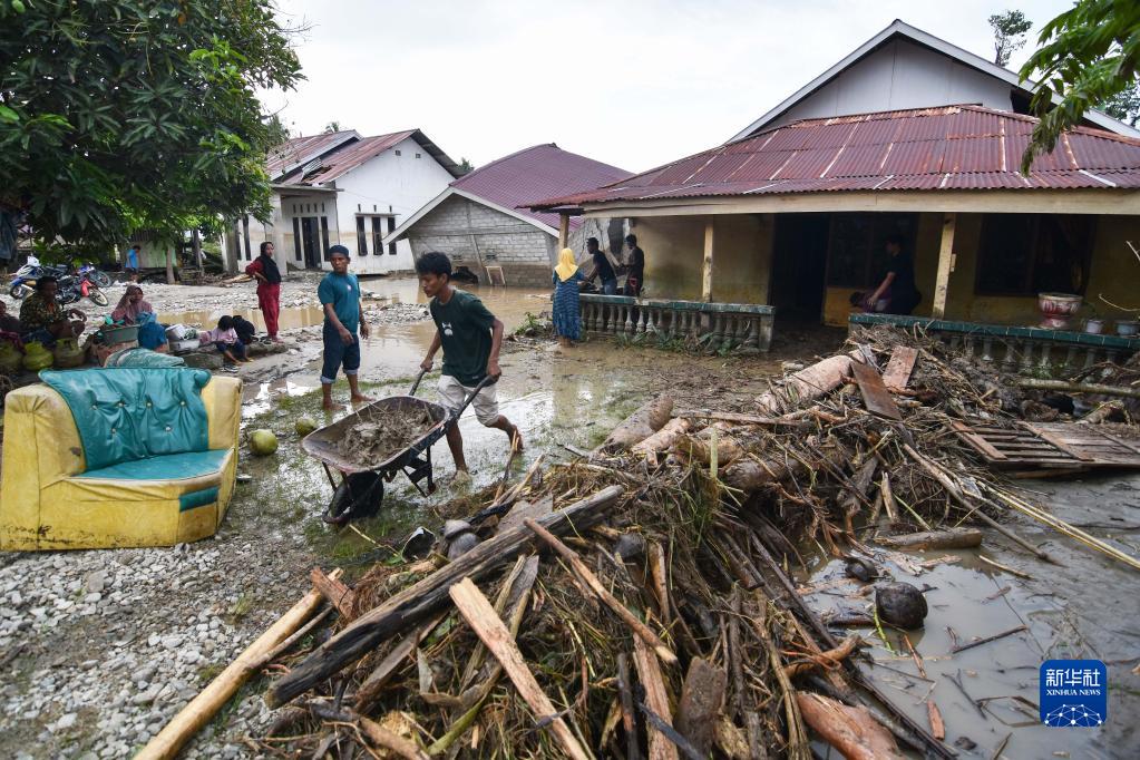 7月29日,在印尼中苏拉威西省帕里吉莫乌通县托鲁埃村,人们清理被洪水损坏的房屋。