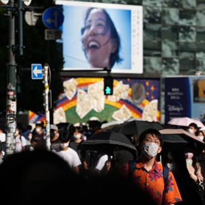 7月29日,戴口罩的行人走在日本东京涩谷街头。