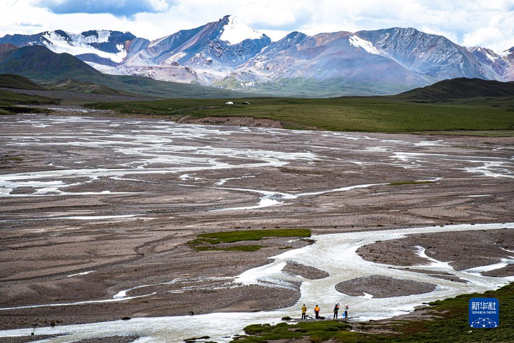 7月26日,来自长江科学院的科考队员在长江源区进行科考工作(无人机照片)。素有“中华水塔”之称的三江源地区,过去五年的年平均自产水资源总量达到685.42亿立方米。