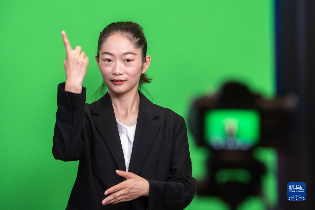 7月13日,在重庆华代律师事务所,谭婷在录制普法短视频。8岁时,她因故丧失听力。2017年,大学毕业的谭婷决定师从“手语律师”唐帅,从零开始学习法律。2020年,谭婷通过法律职业资格考试。目前,她活跃在直播平台,定期推出普法短视频和直播讲解。