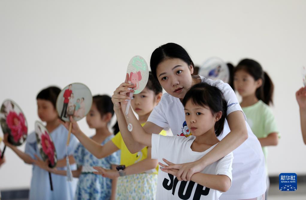 近日,暑期少儿昆曲公益课堂在位于湖南省郴州市的湖南省昆剧团开班,60多名“小戏迷”在昆曲演员的带领下,学习体验昆曲,感受戏曲文化的魅力,丰富暑假生活。