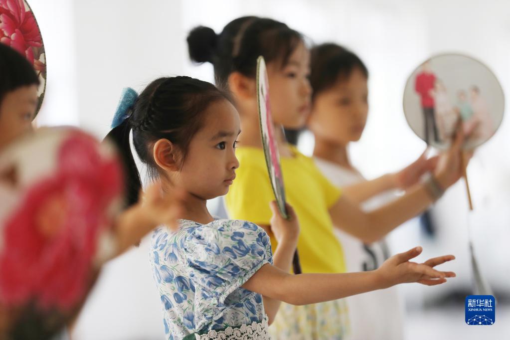 近日,暑期少儿昆曲公益课堂在位于湖南省郴州市的湖南省昆剧团开班,60多名“小戏迷”在昆曲演员的带领下,学习体验昆曲,感受戏曲文化的魅力,丰富暑假生活。