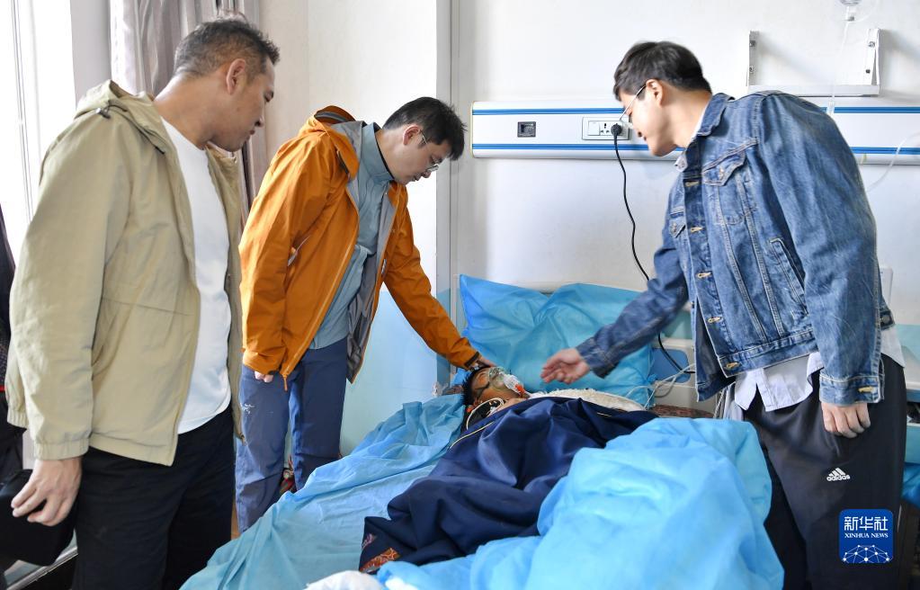 7月30日,中国医学科学院整形外科医院医生王克明(中)在阿里地区人民医院看望一名术后儿童。