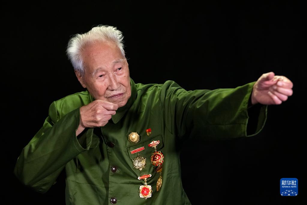 6月30日,在四川省德阳市,抗战老战士郝校忠讲述抗日战争时期的经历。