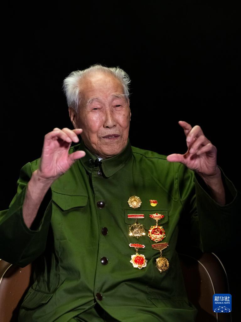 6月30日,在四川省德阳市,抗战老战士郝校忠讲述抗日战争时期的经历。