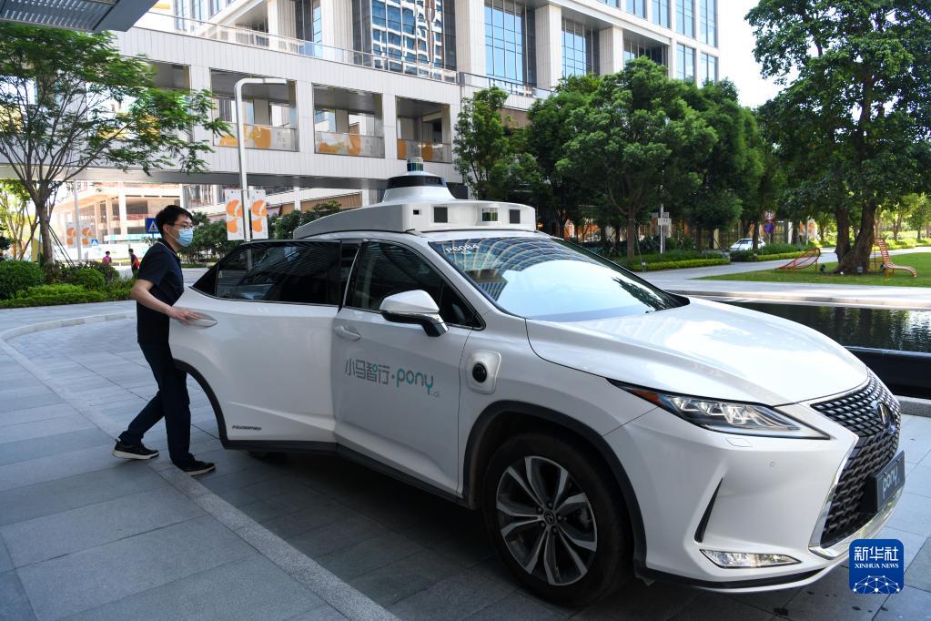 8月1日,在深圳前海,一名乘客体验乘坐小马智行自动驾驶汽车。