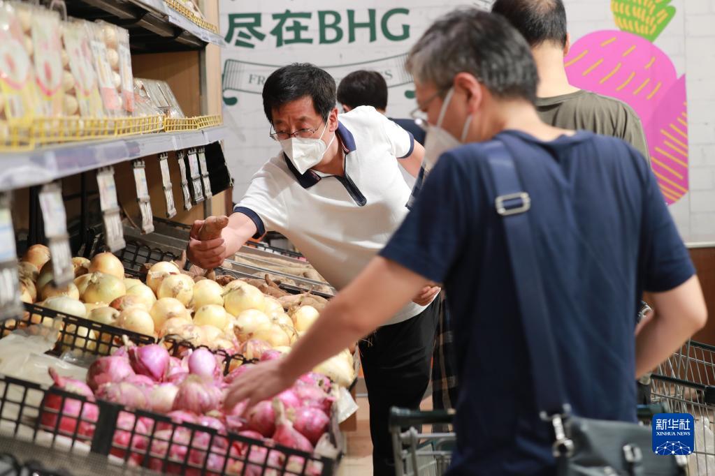 8月1日,在兰州市城关区北京华联超市东方红广场店,市民在选购蔬菜。