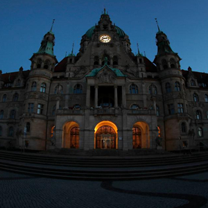 这是8月1日晚拍摄的德国汉诺威市政厅。