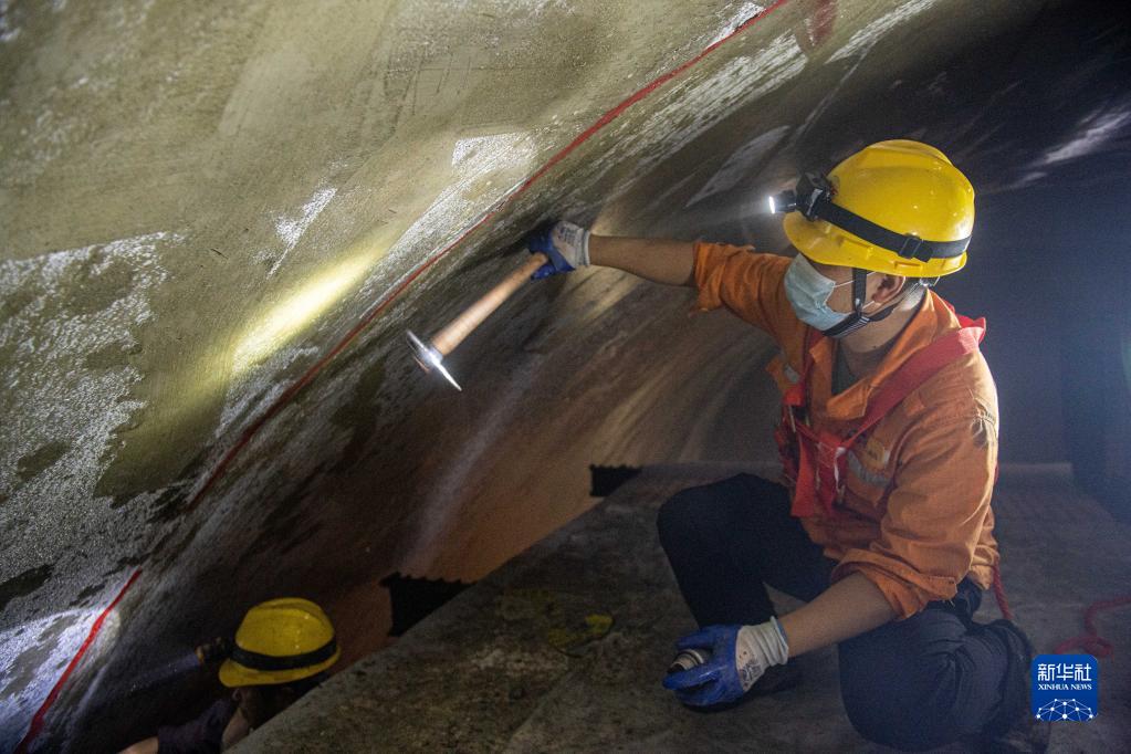8月3日,宁波工务段的工人对隧道进行敲击检查。