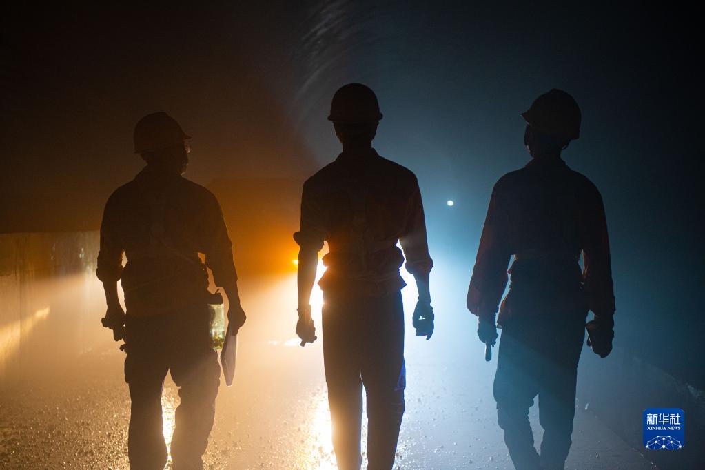 8月3日,宁波工务段的工人们结束敲击检查作业后准备离开隧道。