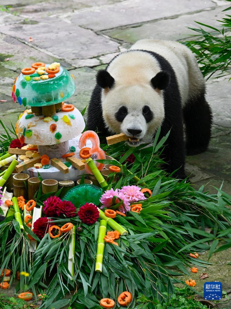 8月3日,在中国大熊猫保护研究中心雅安基地,大熊猫“雅雅”在享用美食。