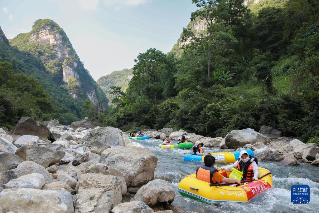 夏日时节,位于贵州省施秉县的杉木河景区迎来大量喜爱漂流的游客,在欣赏优美风光的同时,尽享夏日清凉。