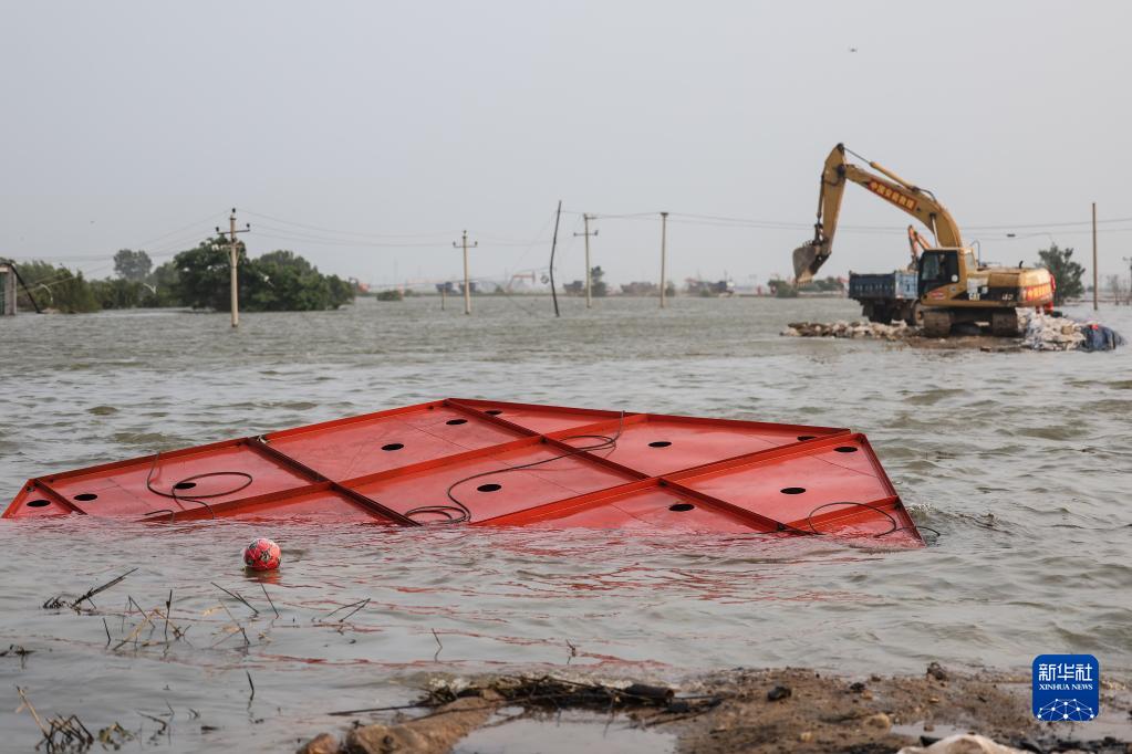 8月4日拍摄的被投放在溃口处的六角沉箱。