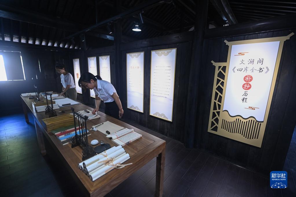 8月5日,参观者在“文澜阁《四库全书》抗战西迁首站研学中心”内参观。