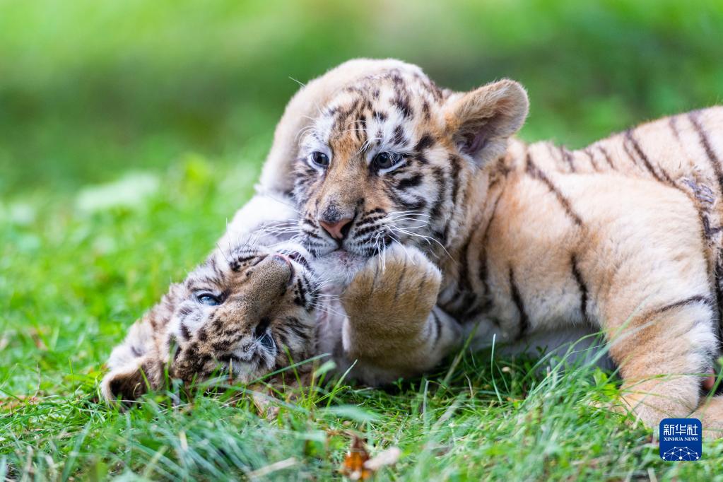 7月29日在横道河子东北虎林园拍摄的东北虎幼虎。7月29日是“全球老虎日”。游客们来到位于黑龙江省海林市的横道河子东北虎林园参观。