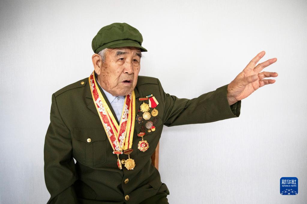 6月29日,在山东省东营市,抗战老战士李正家讲述抗战经历。
