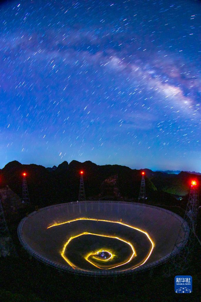 “中国天眼”夜景(2022年7月24日维护保养期间拍摄)。