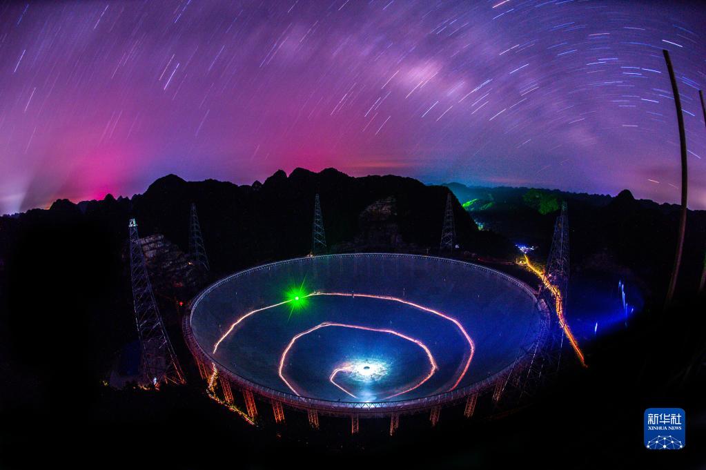 星空下的“中国天眼”(2016年6月27日维护保养期间拍摄)。