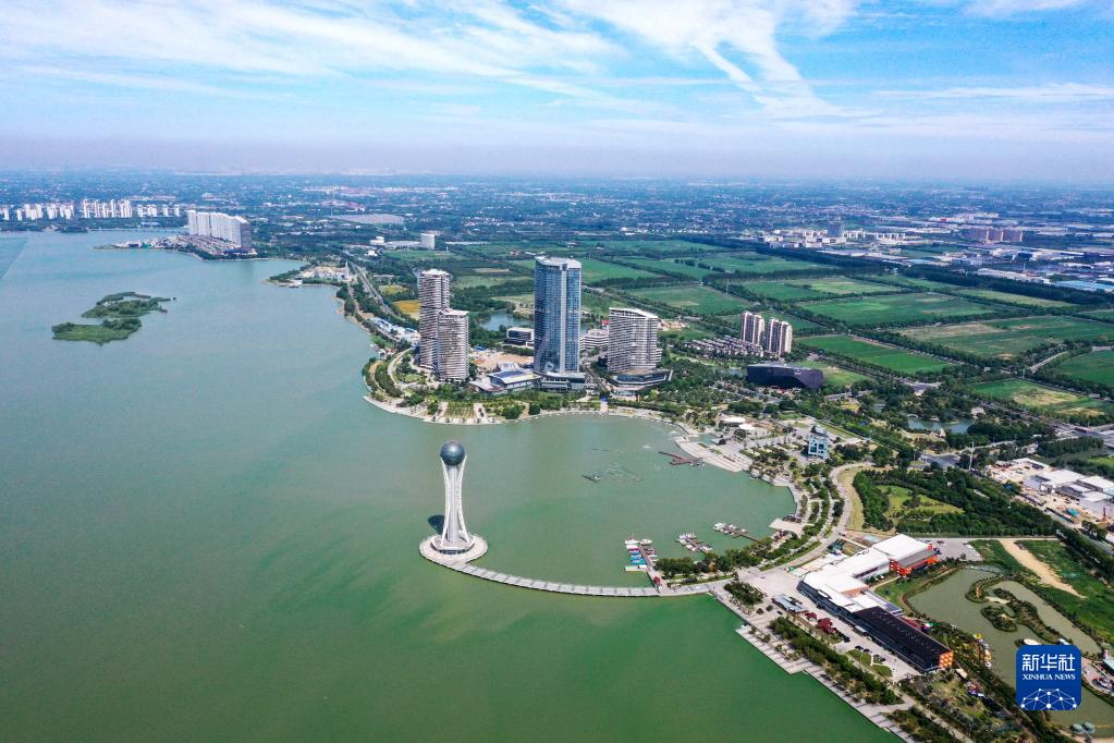 8月7日拍摄的武进区西太湖(滆湖)揽月湾景区(无人机照片)。