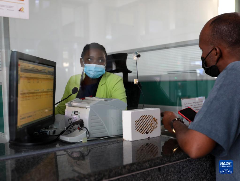 7月27日,售票员艾格尼丝(左)在肯尼亚蒙内铁路蒙巴萨终点站售票。
