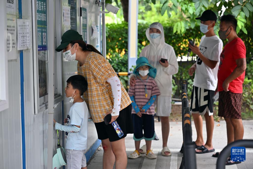 8月7日,游客在三亚一处核酸采样点进行核酸采样。