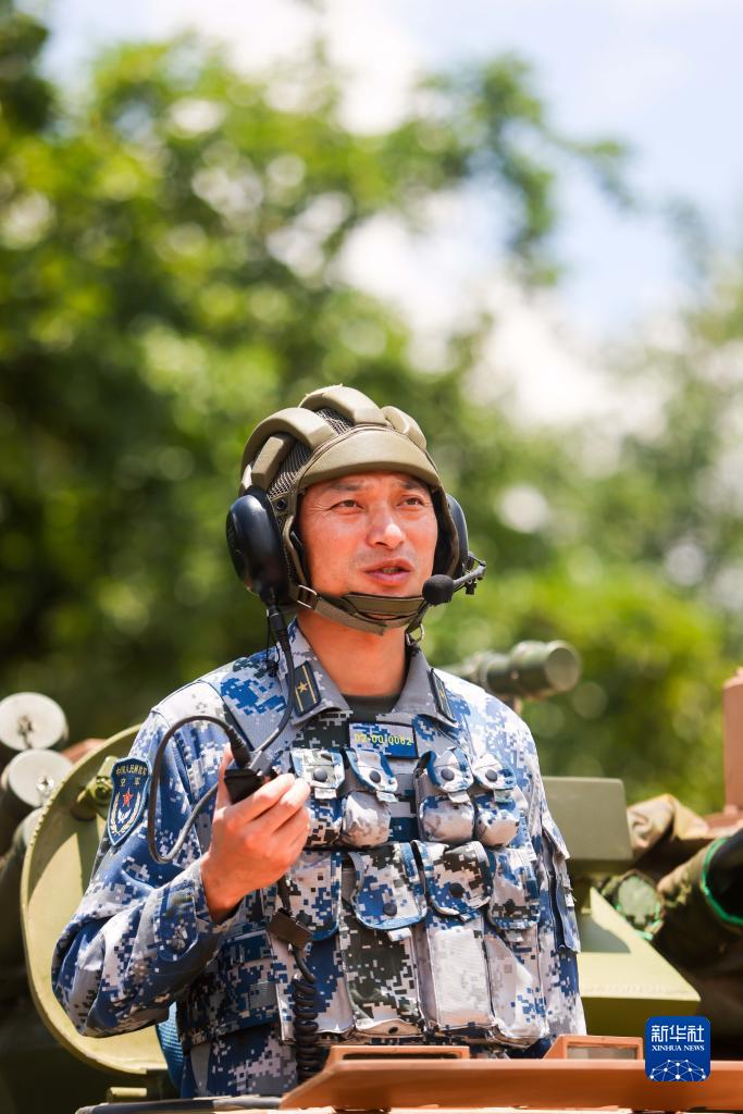空降兵某旅二营政治教导员余海龙在操纵空降战车(2022年7月11日摄)。新华社发(张朋倍 摄)