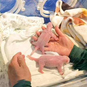 今年3月,大熊猫“二顺”在中国大熊猫保护研究中心与大熊猫“青青”完成自然交配。在重庆动物园工作人员的悉心照顾下,于2022年7月22日产下双胞胎兄弟。经过半个多月的精心育幼,目前两只幼仔生长良好。
