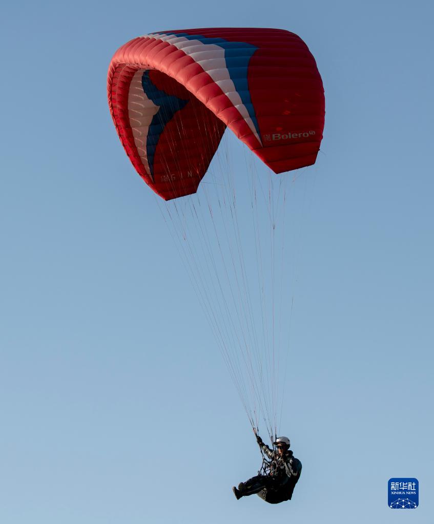 陈瑞峰驾着滑翔伞飞行在空中(5月29日摄)。新华社记者 胡虎虎 摄