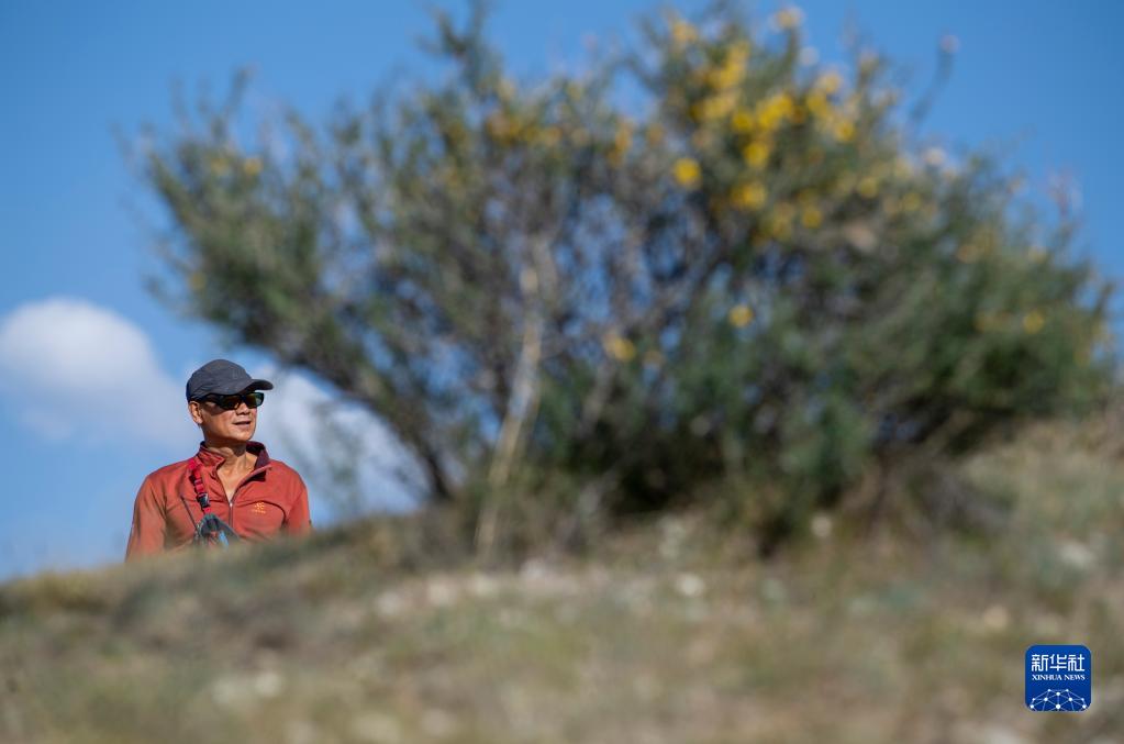 在新疆乌鲁木齐市南郊山间,完成一次飞行后,陈瑞峰在休息(6月11日摄)。新华社记者 胡虎虎 摄