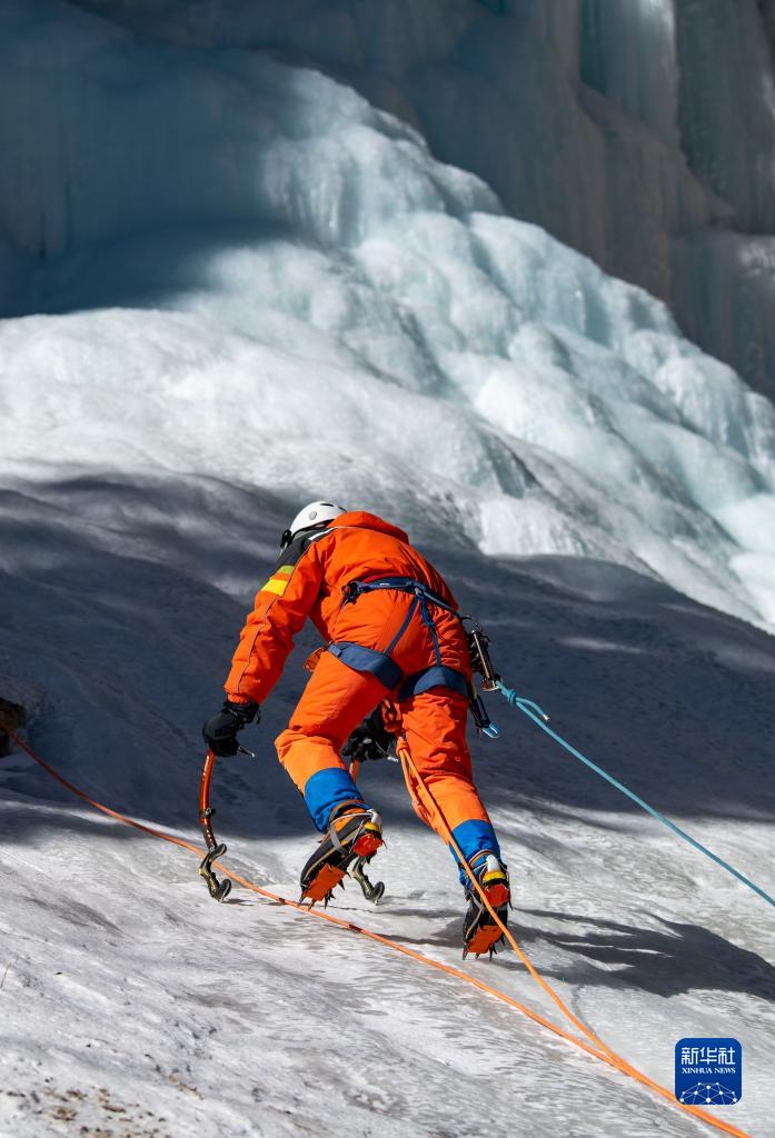 陈瑞峰在新疆乌鲁木齐南郊的山区攀冰(2021年1月16日摄)。新华社记者 胡虎虎 摄