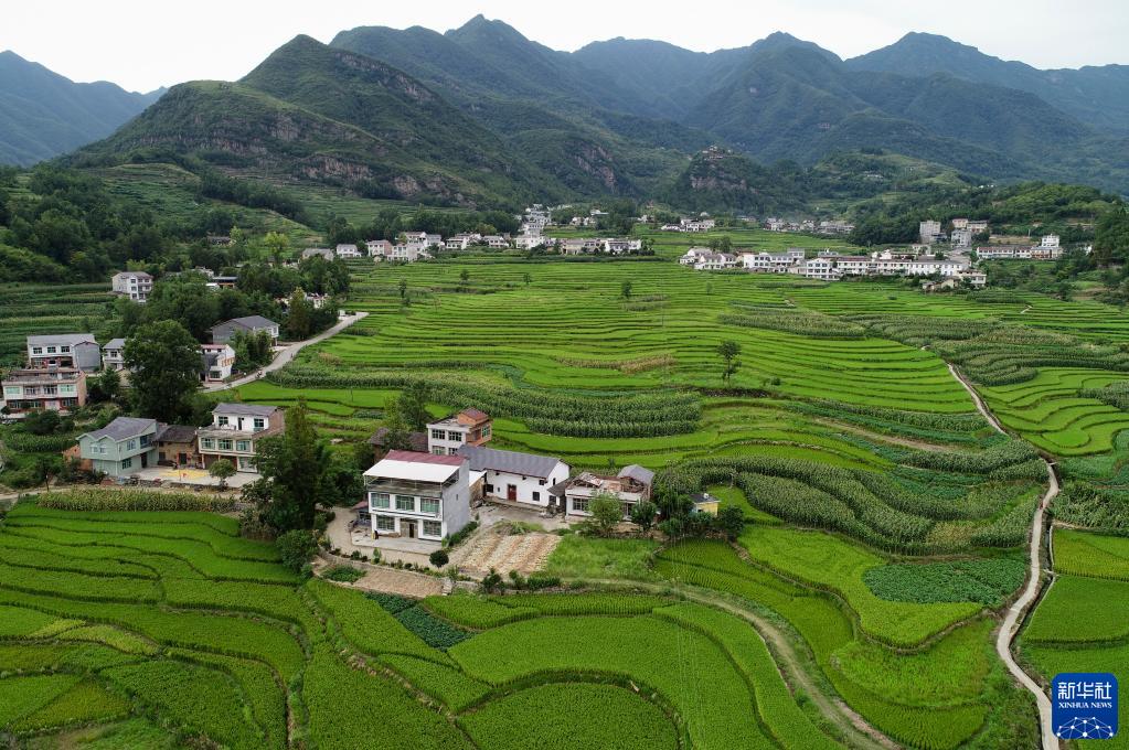 这是8月9日拍摄的陕西省汉阴县漩涡镇凤堰古梯田一景(无人机照片)。