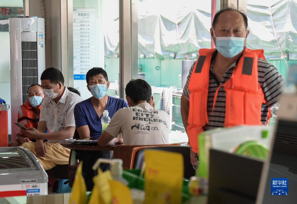 8月9日,船员在服务区的三峡水上温情驿站内休息。 新华社记者 李贺 摄