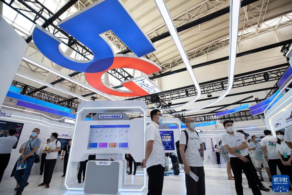 8月10日,人们在中国电信集团有限公司展区了解5G产品。