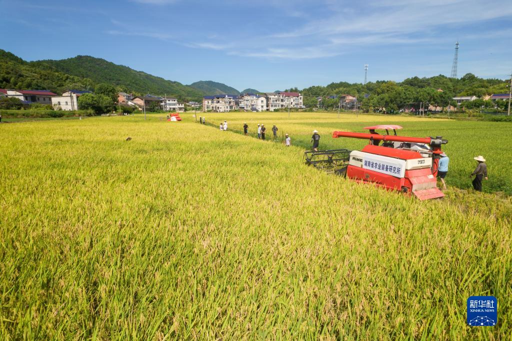 当日,湖南省农学会组织专家对位于湖南省长沙市宁乡市流沙河镇的“一季杂交稻+再生稻”生产模式宁乡示范基地的头季稻进行测产验收,经专家组现场测算,该基地头季稻亩产765.7公斤。