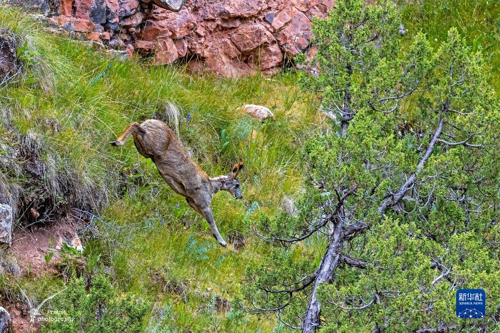 这是在昂赛大峡谷内拍摄的马麝(8月6日摄)。
