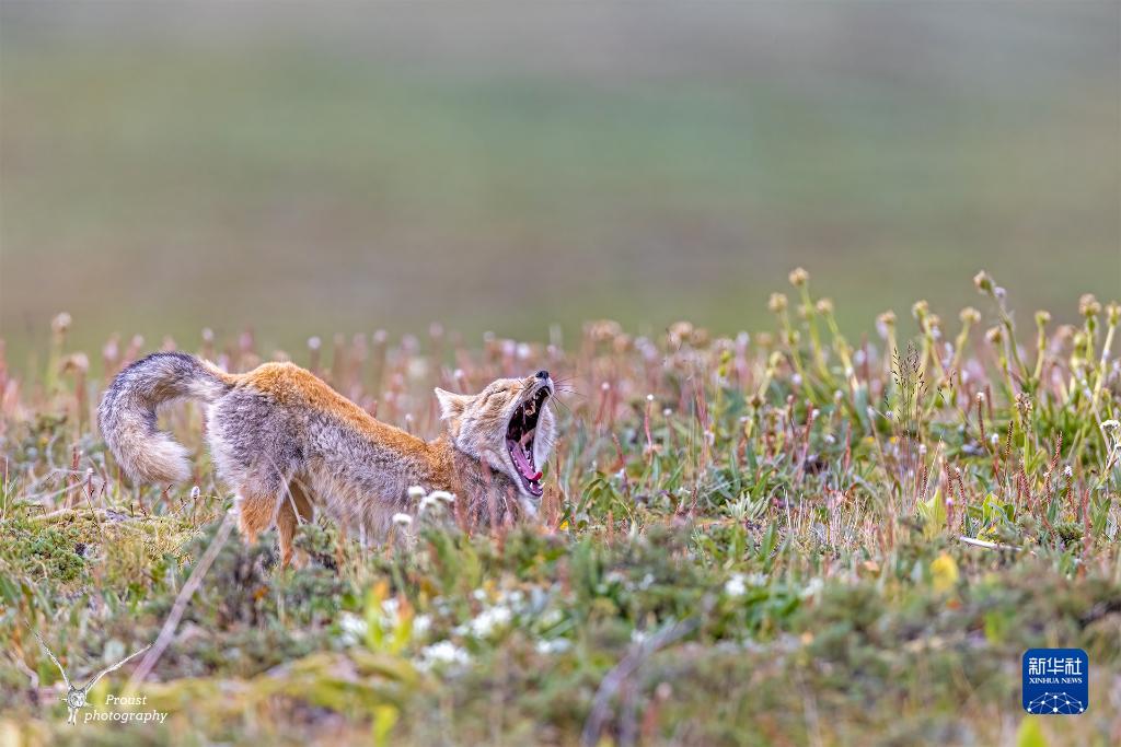 这是在昂赛大峡谷内拍摄的藏狐(8月6日摄)。