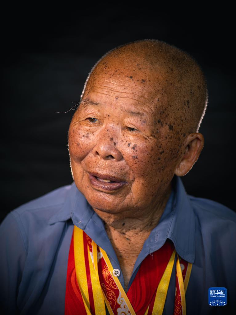 7月27日在浙江省温岭市拍摄的抗战老战士牟锡志。