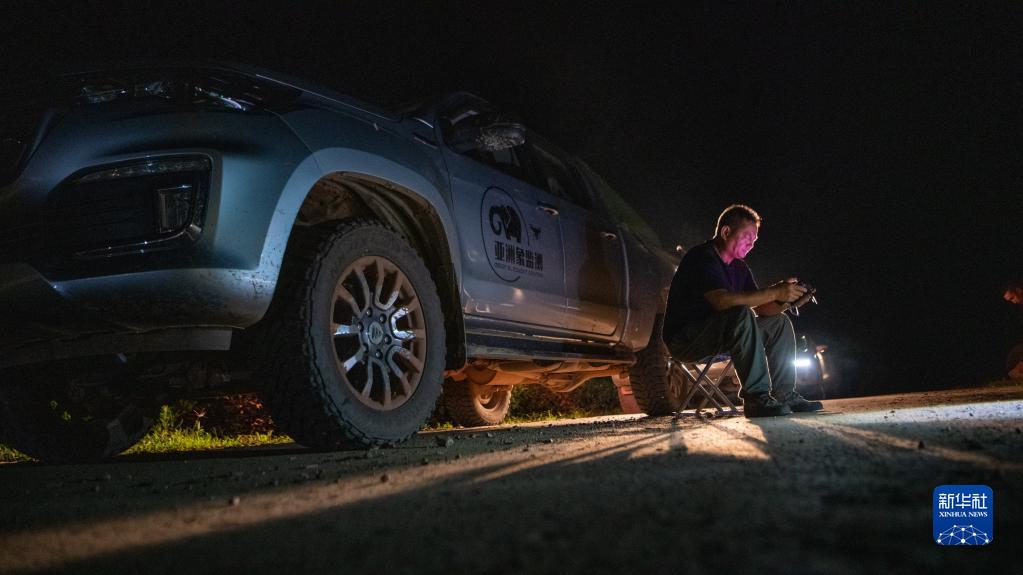 清晨,刁发兴使用无人机确认村庄附近的亚洲象位置(8月1日摄)。新华社记者 江文耀 摄