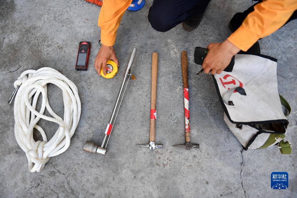 8月11日,桥隧工在芷江桥隧检查工区检查巡检作业工具。