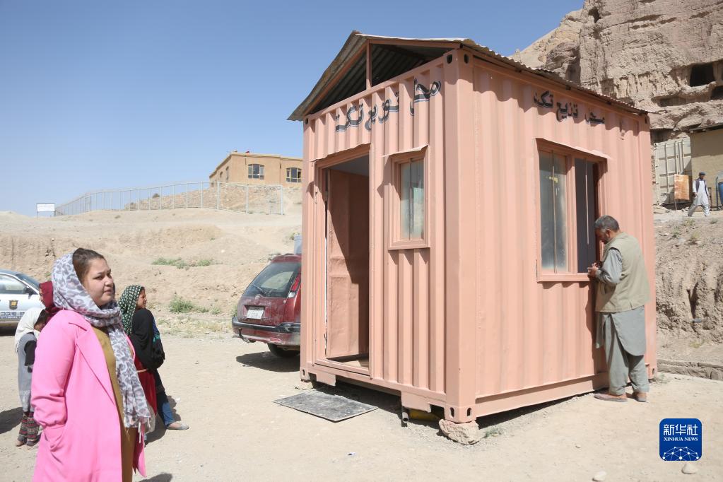 这是7月13日在阿富汗巴米扬拍摄的文物保护工作站。