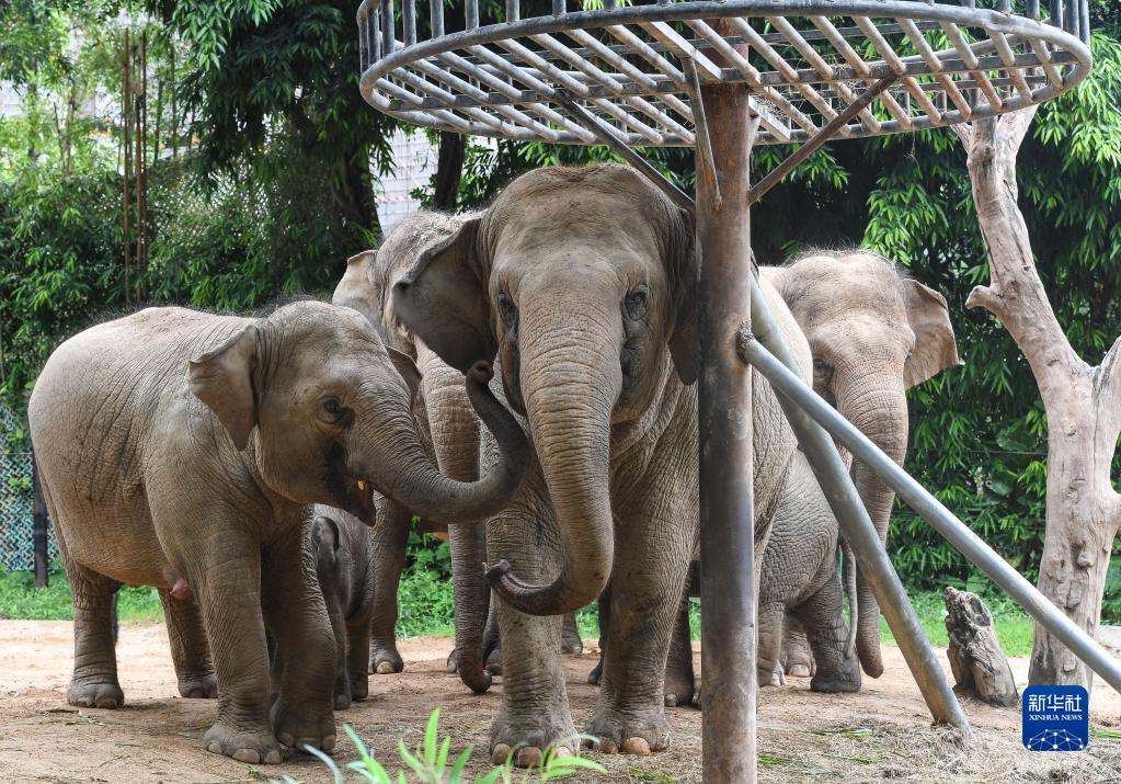 这是8月12日在广州长隆野生动物世界拍摄的亚洲象家族。新华社记者 刘大伟 摄