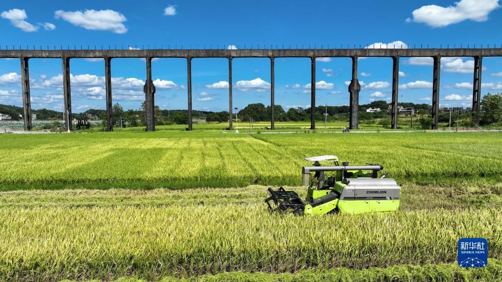 眼下,湖南省常宁市的中稻进入收割期。当地农民抢抓晴好天气忙收获,确保颗粒归仓。