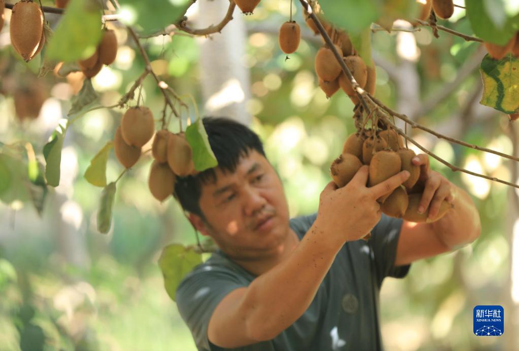 8月13日,在湖南张家界市永定区罗塔坪乡长寿村,农户采收猕猴桃。