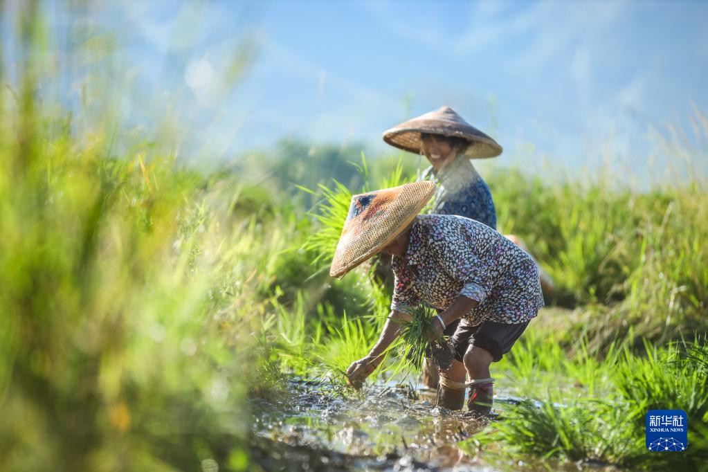当日是立秋节气,农民抢抓农时劳作,一派繁忙景象。