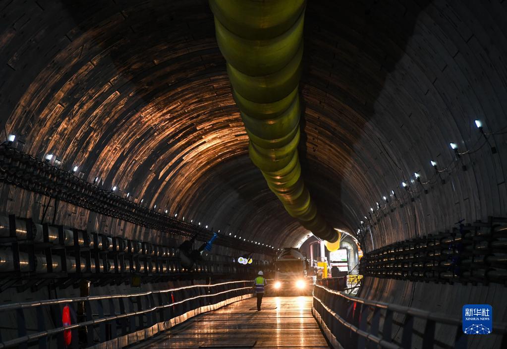 8月10日,施工人员行走在深江铁路珠江口隧道已完成段。