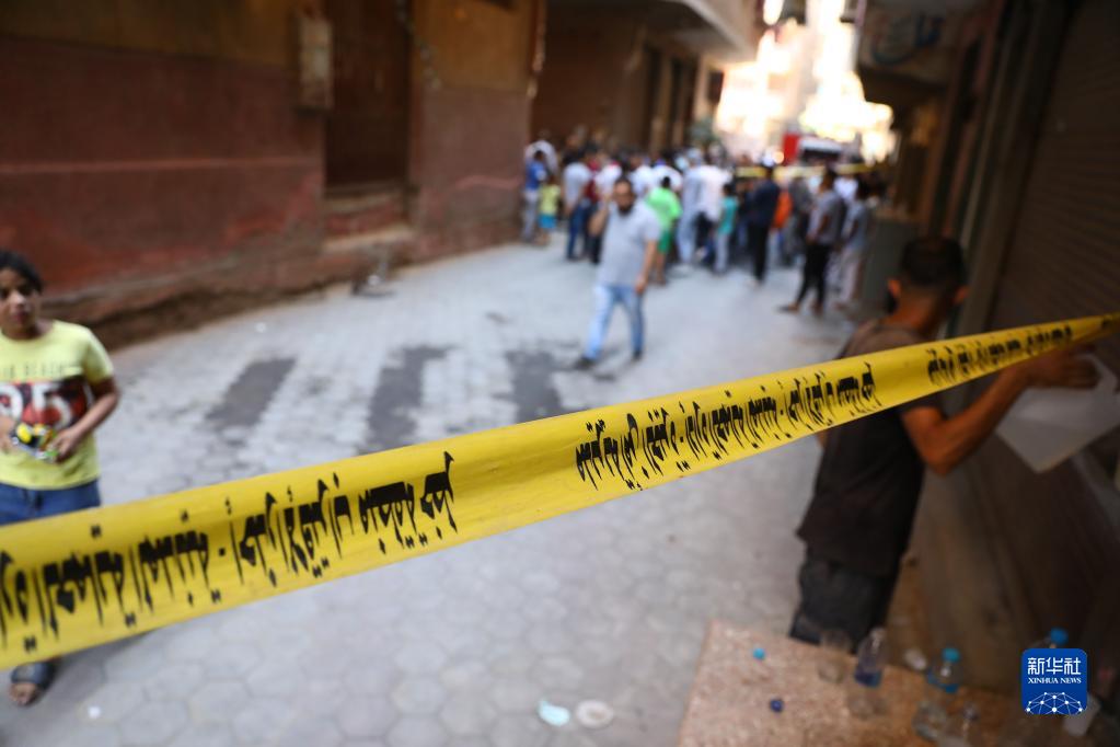 8月14日,在埃及吉萨省,警察在火灾现场附近拉起警戒线。